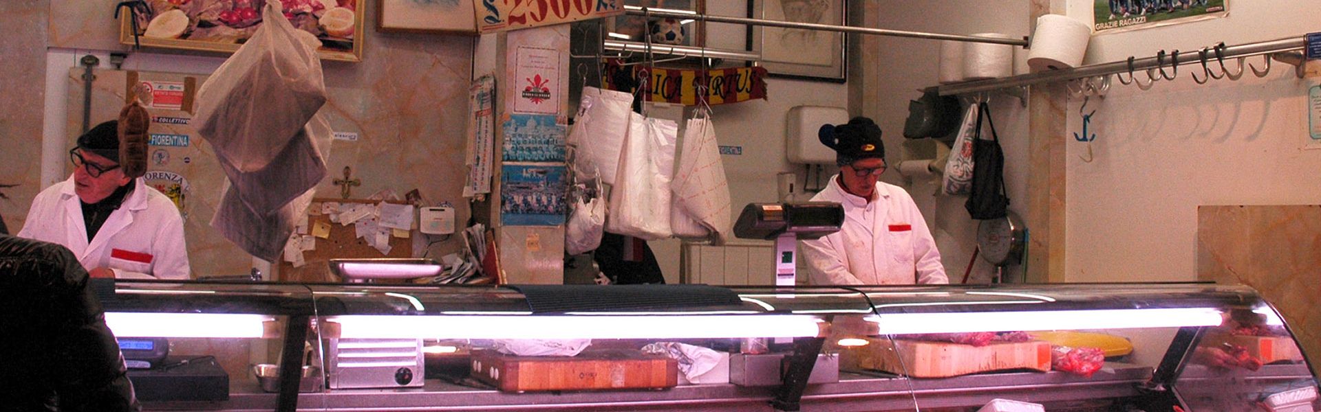 Una storica bottega al Mercato Centrale, dove il tempo non sembra essere passato, dove vecchie insegne ancora in lire e targhe alle pareti si distinguono tra proster e immagini della amata Fiorentina. Un’arte che viene tramandata da generazioni quella della Macelleria, una bottega dal sapore antico e crudo, che ancora si distingue per la tradizionalità dei Macellai che tutt’ora non hanno bisogno della bilancia perchè il “peso si fa ad occhio” e non sbagliano mai! Una vasta scelta di carni, dalla polleria ai bovini, chiedere a loro un taglio di carne significa avere non solo la migliore qualità, ma consigli su come cuocerla e conservarla!